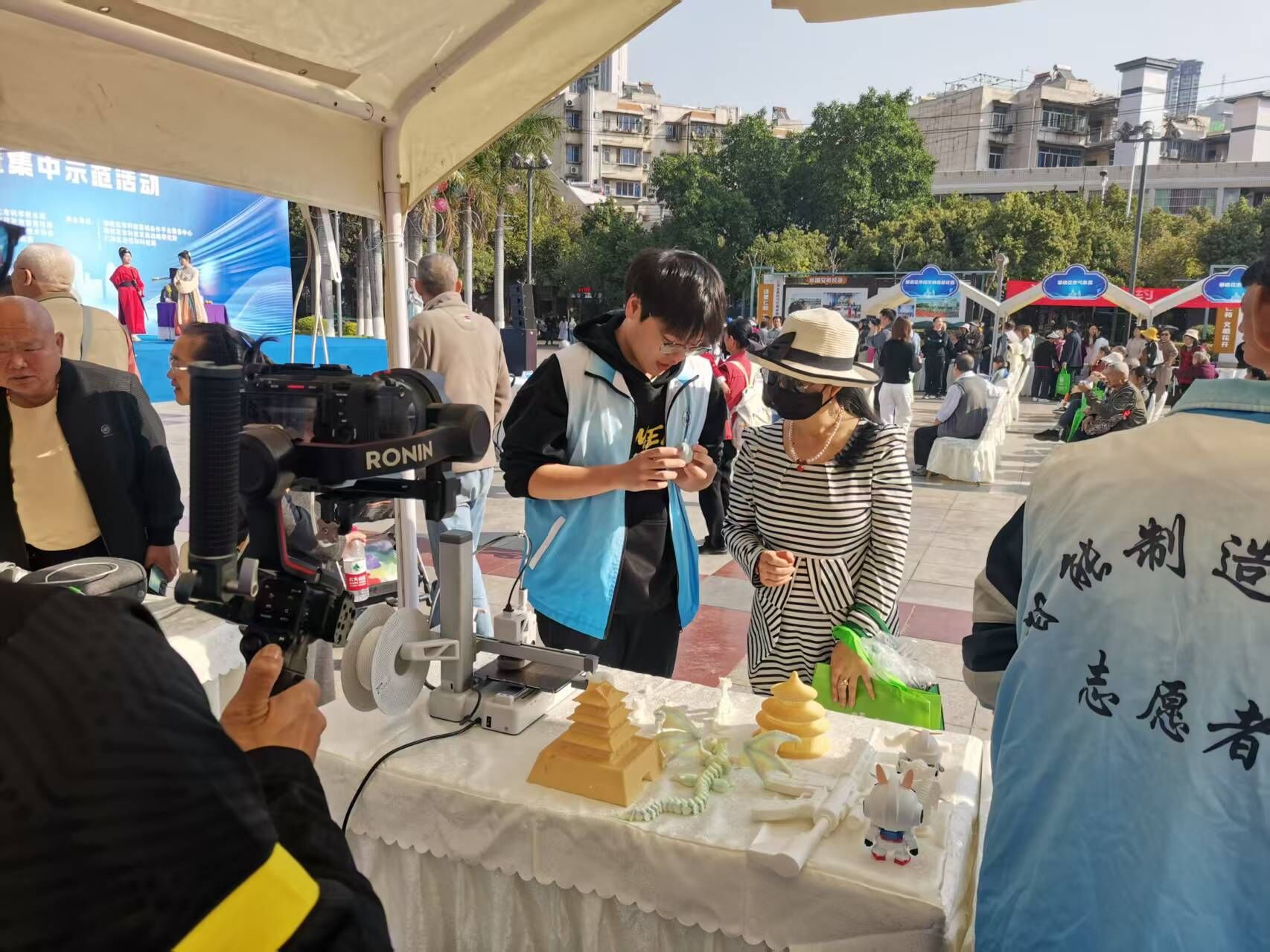 在现场集中示范活动的科普集市区域,攀枝花学院智能制造学院的志愿者们设置了专属展示点位,将3D打印技术及成果作为展示重点。现场不仅陈列了3D打印制作的工业零件、创意模型、文创产品等实物成果,志愿者还开展了3D打印现场演示,向市民讲解增材制造的技术原理、操作流程以及在智能制造、日常生活、工业生产等领域的应用场景。不少市民驻足观看、亲手体验,近距离感受3D打印技术的魅力,志愿者们则耐心解答市民疑问,用通俗的语言普及智能制造相关知识。